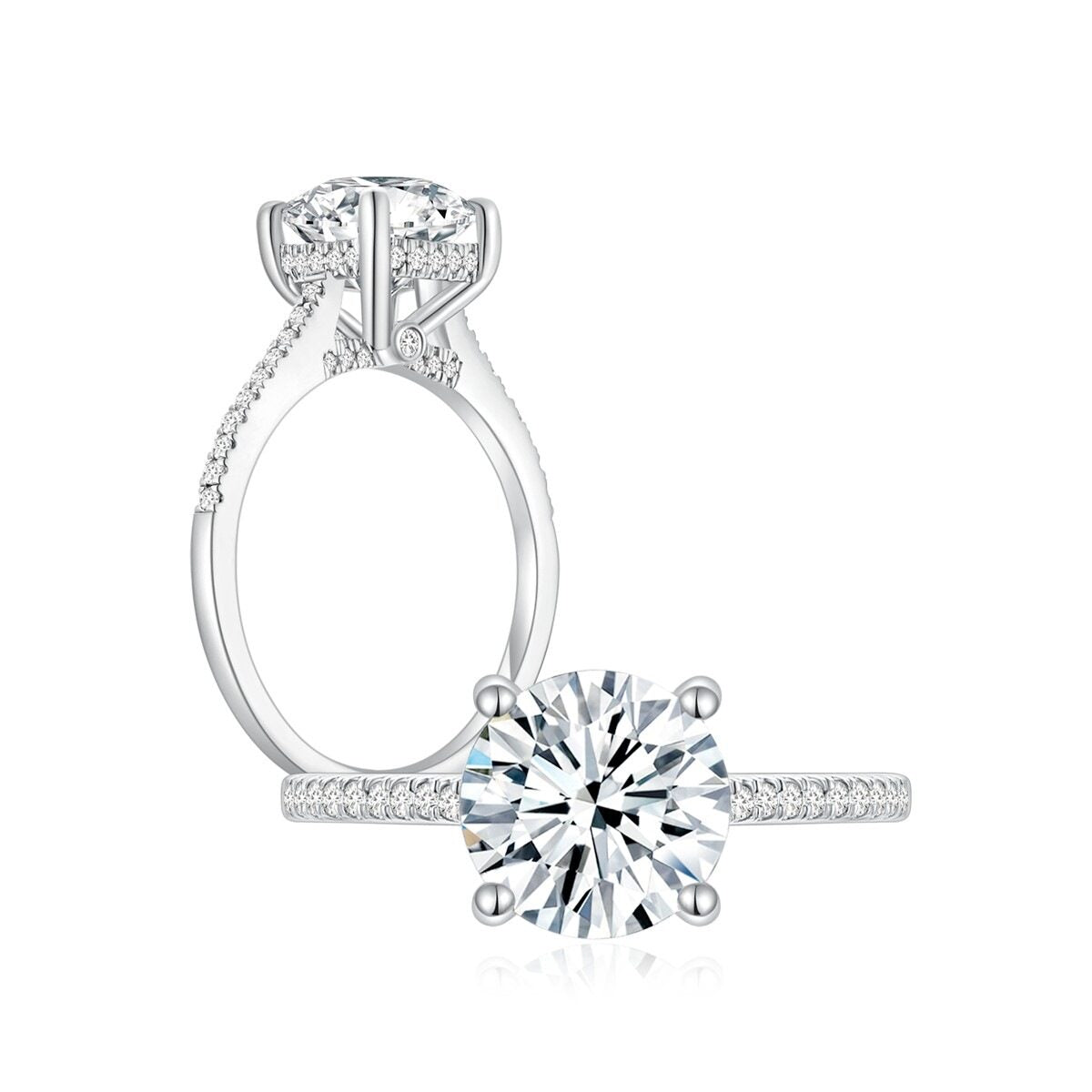 Promise Round Solitaire Pave Ring (4 Prong) Both - Eclat by Oui