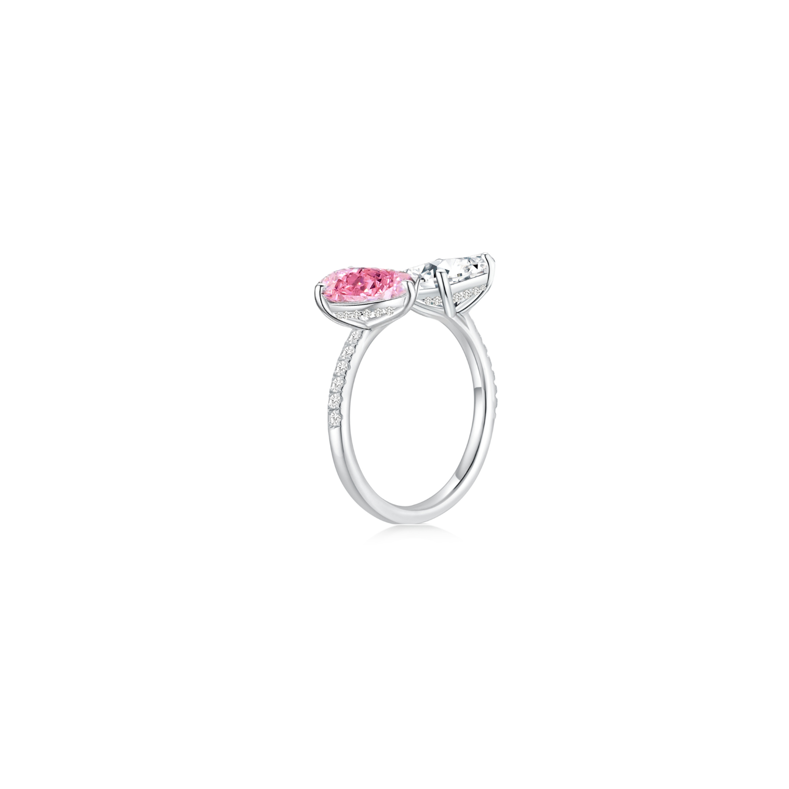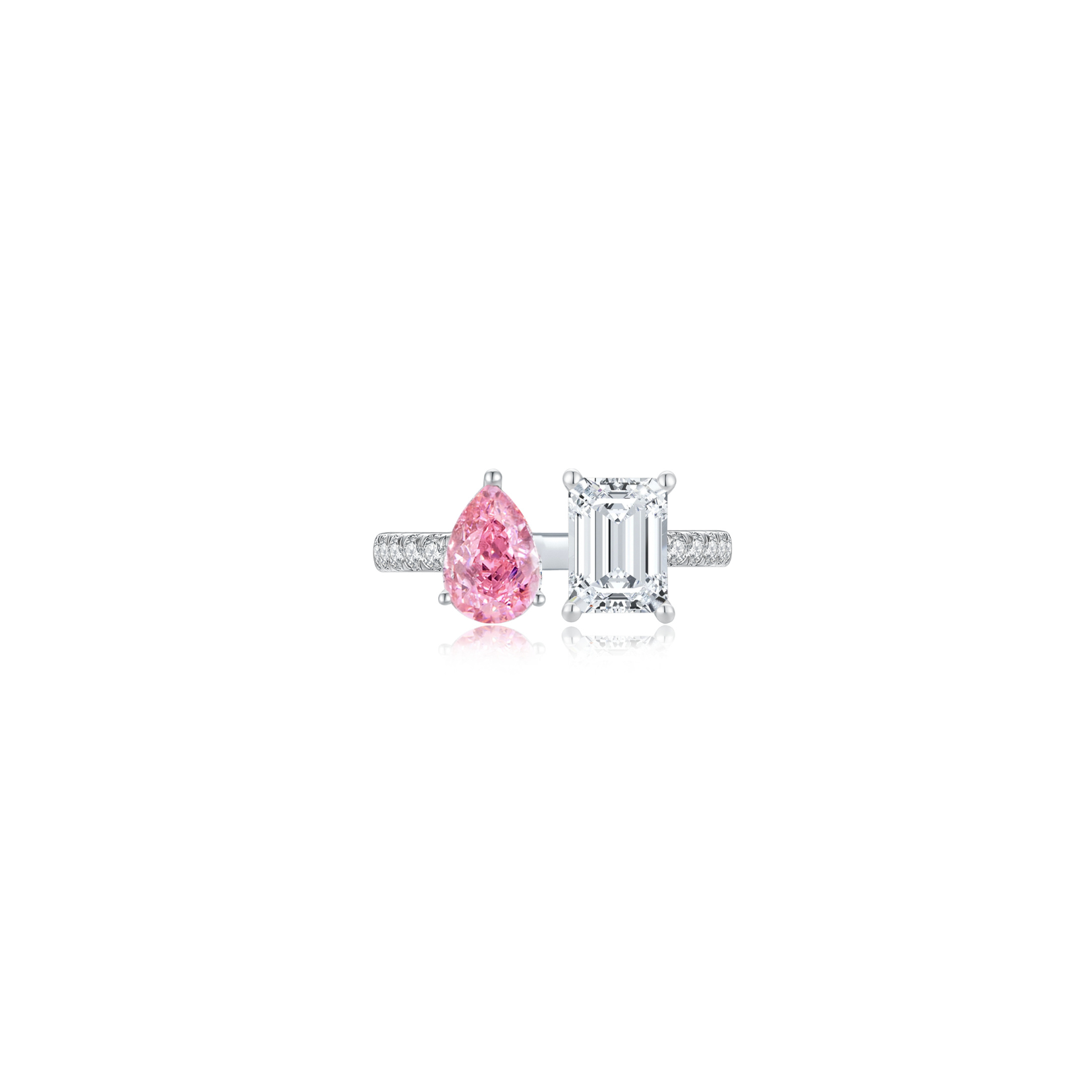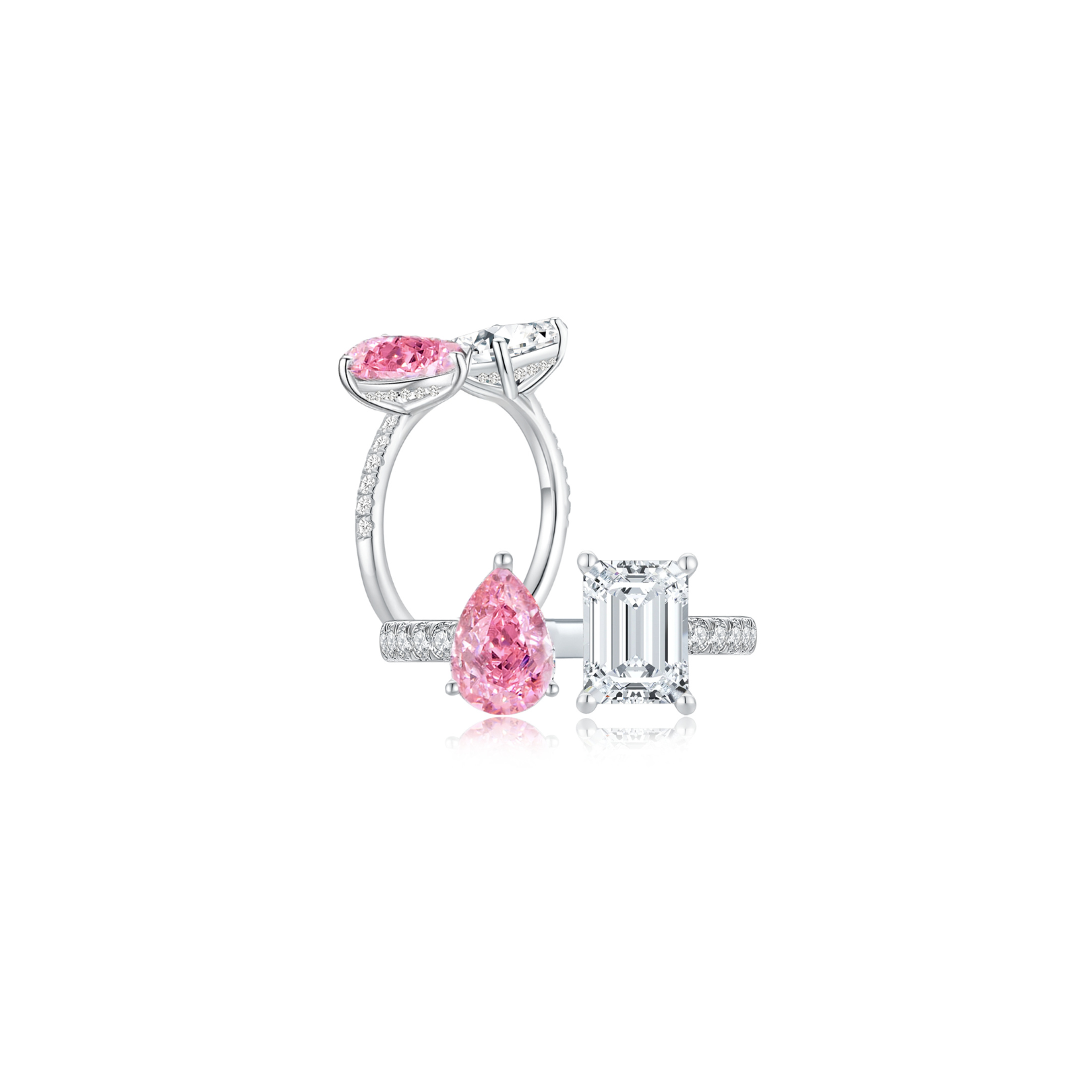 Toi et Moi Step Ear Studs (Pink Pear + Emerald) (White Gold) - Eclat by Oui