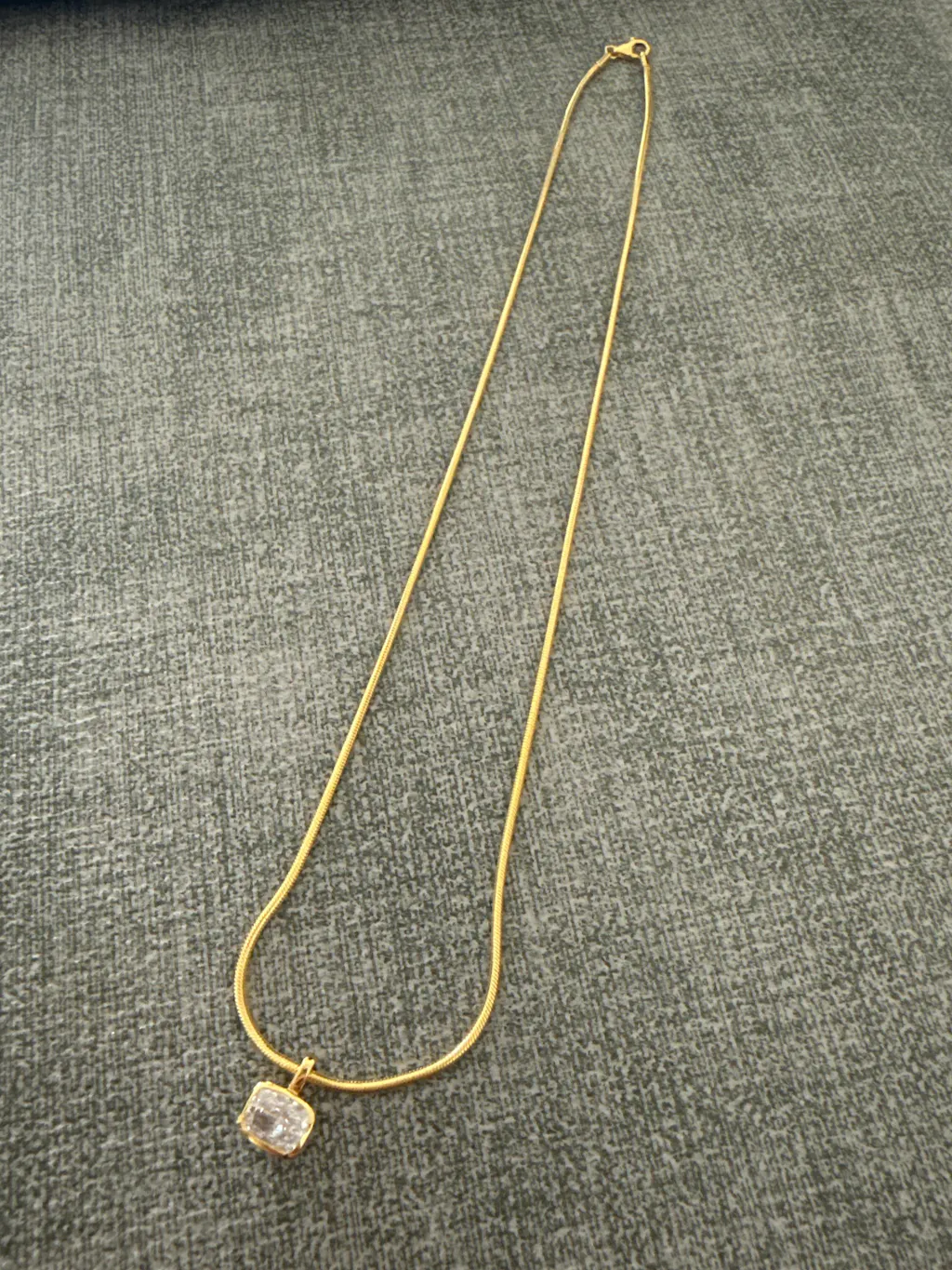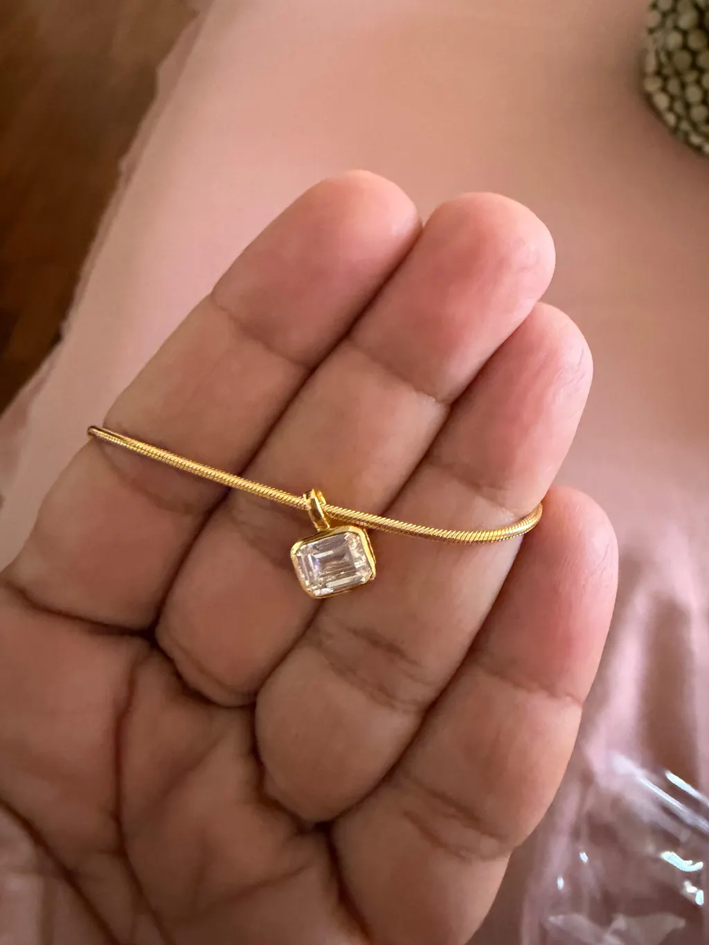 It’s so gorgeous! I love the emerald cut, and the shorter length is perfect for wearing on its own or stacking with other necklaces