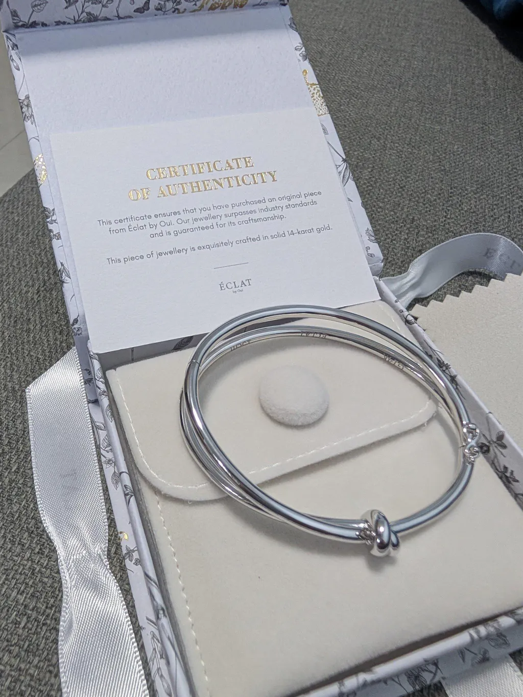 Look how gorgeous this Radiance Bangle is, stacked together with my other bangles!.love it so much! First time purchase from Eclat, will definitely come back for more.