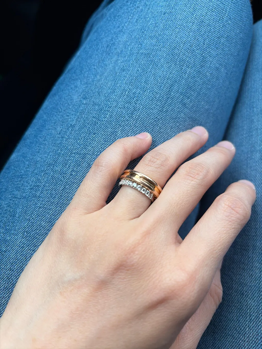 The ring is comfortable on the finger and very easy to match — it goes beautifully with any outfit, whether casual, workwear, or even for events. I especially like how versatile it is; understated but still makes a statement.