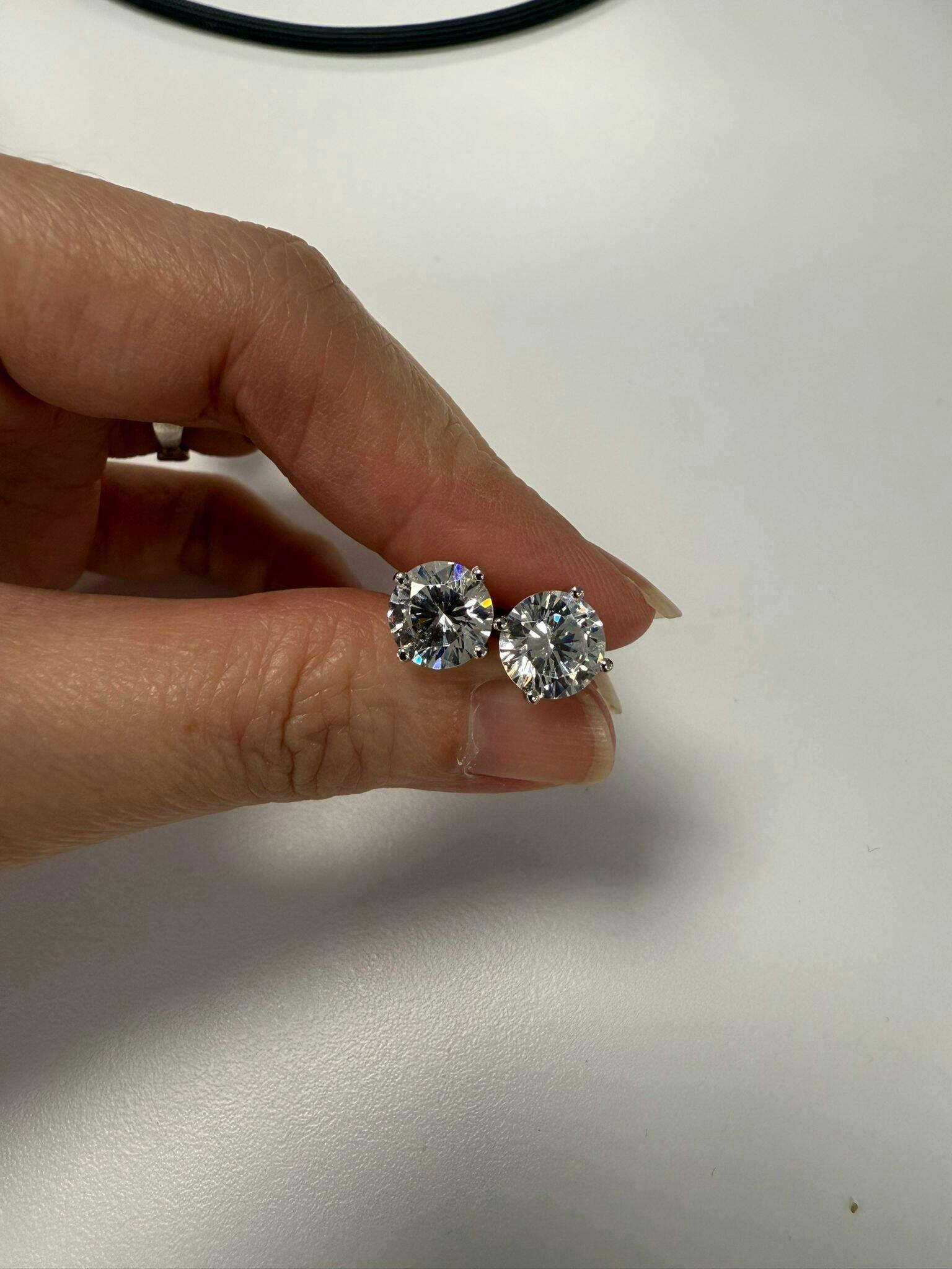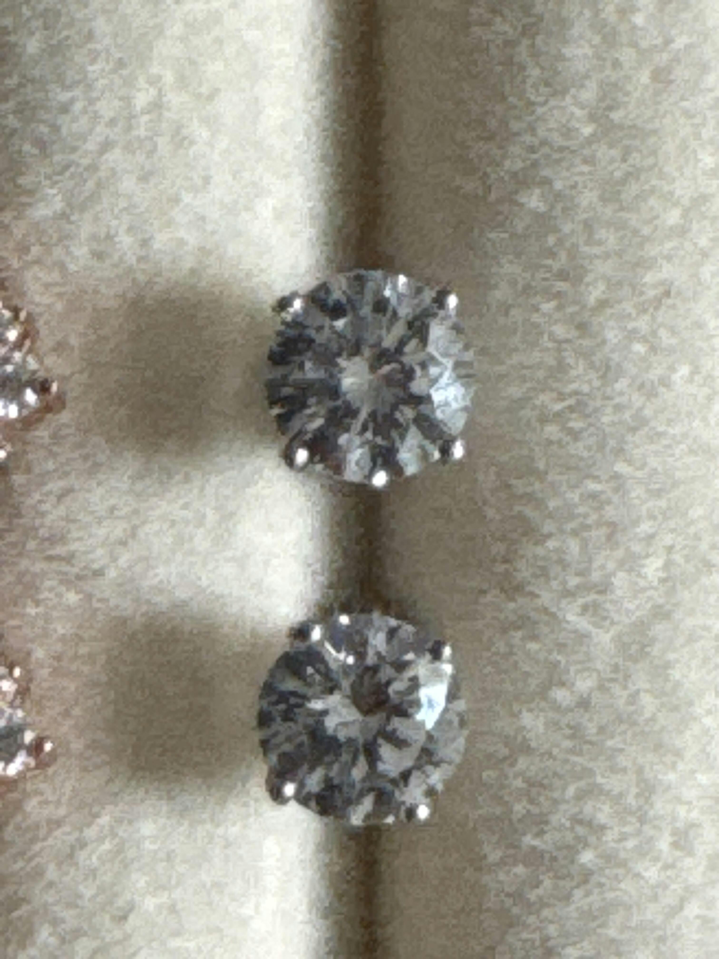 From left to right, the model is wearing the 4 Prong Round Solitaire Ear Studs in 0.5CT, 1CT and 1.5CT respectively.