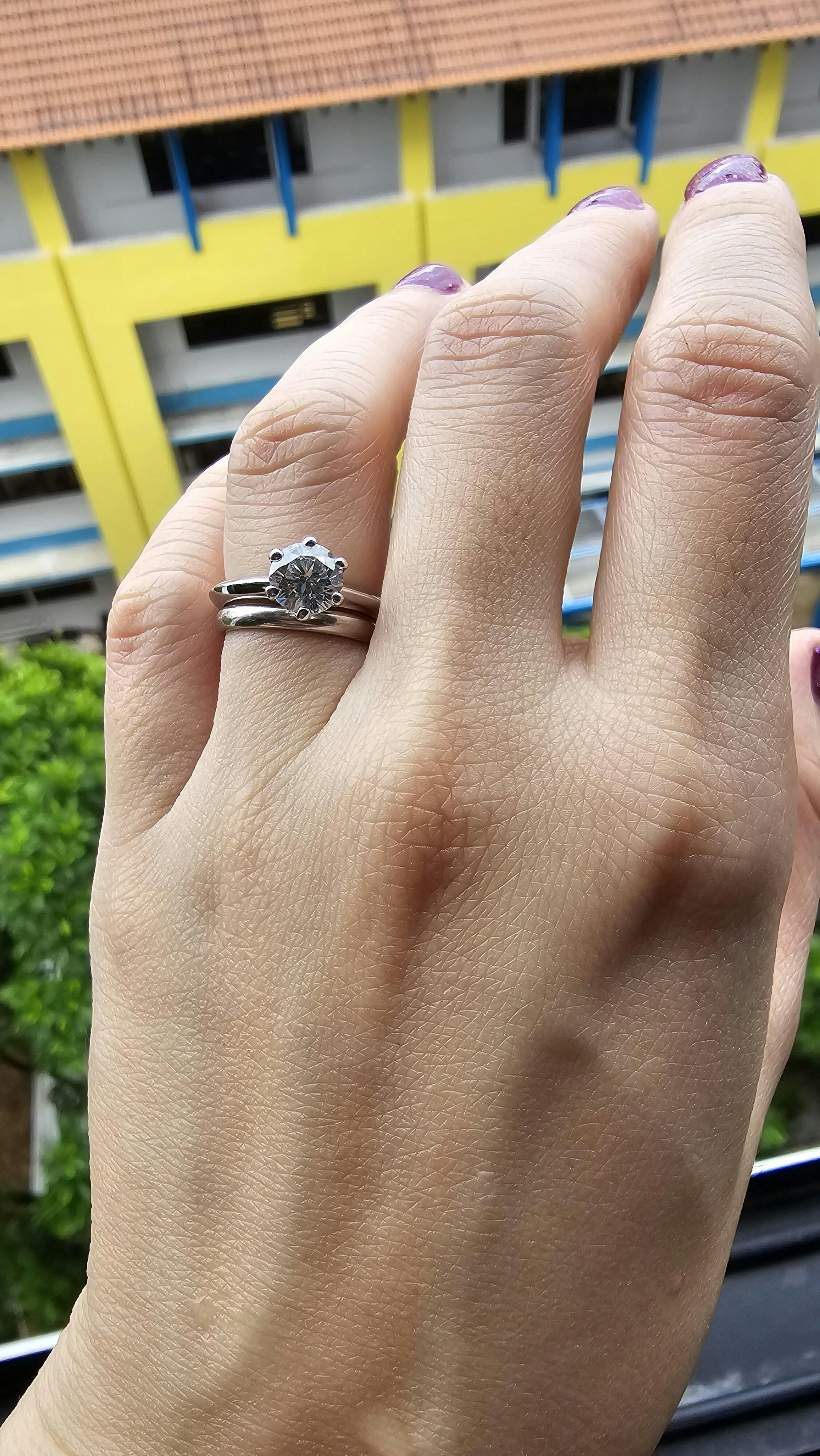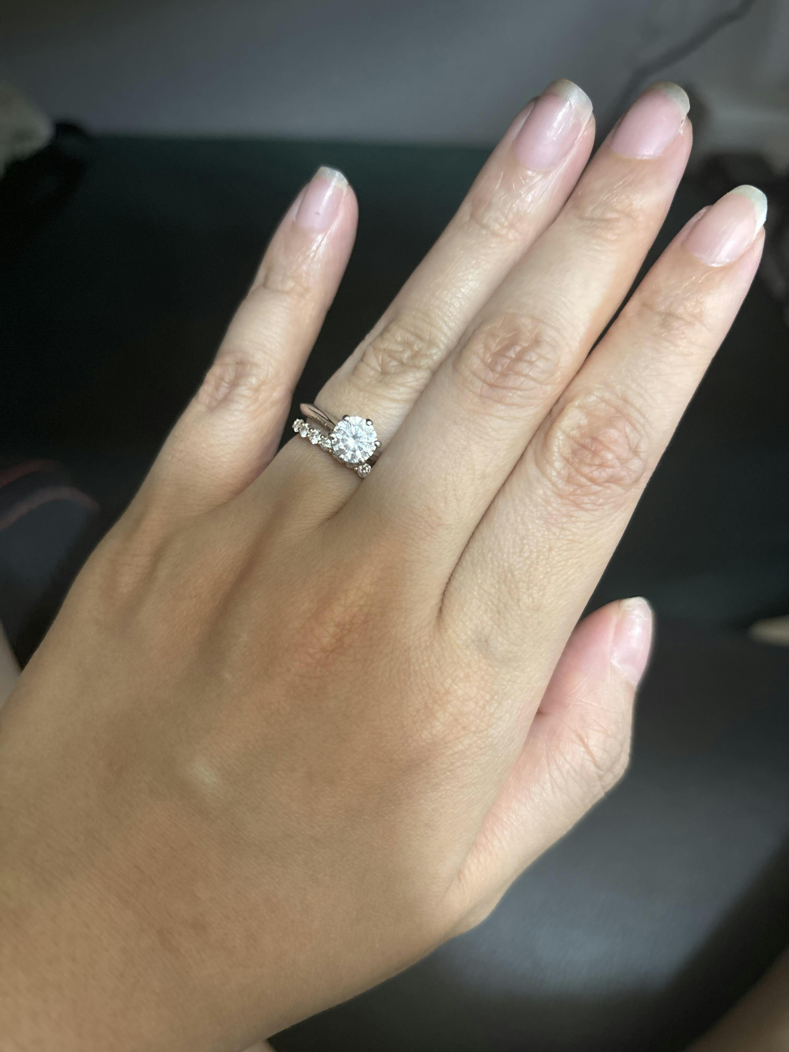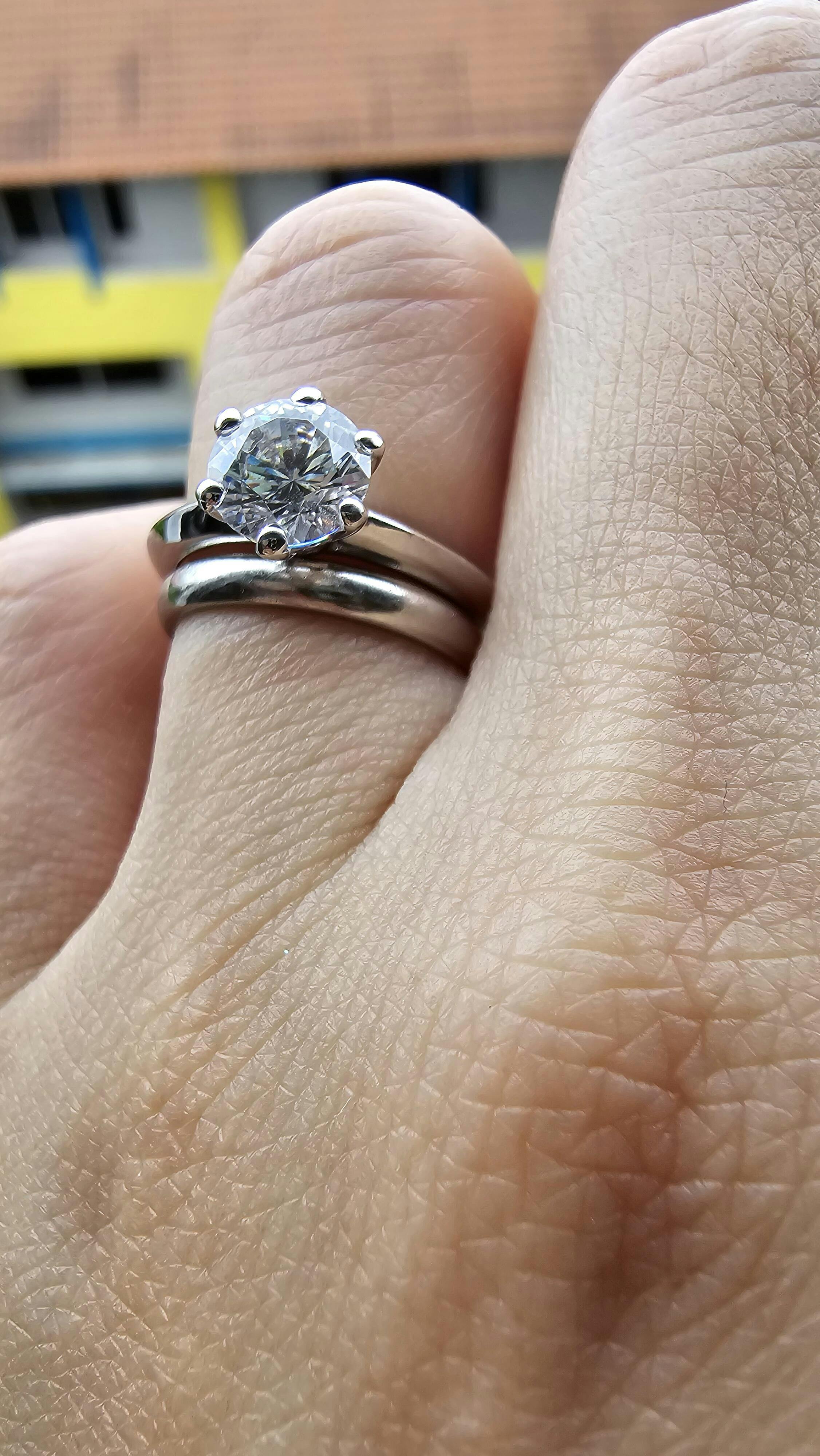 Specifications: The size of a 1ct, 2ct and 3ct equivalent round centre stone measures at 6.4mm, 8.1mm and 9.4mm respectively. Width of band is 2.2mm and 2.5mm respectively.