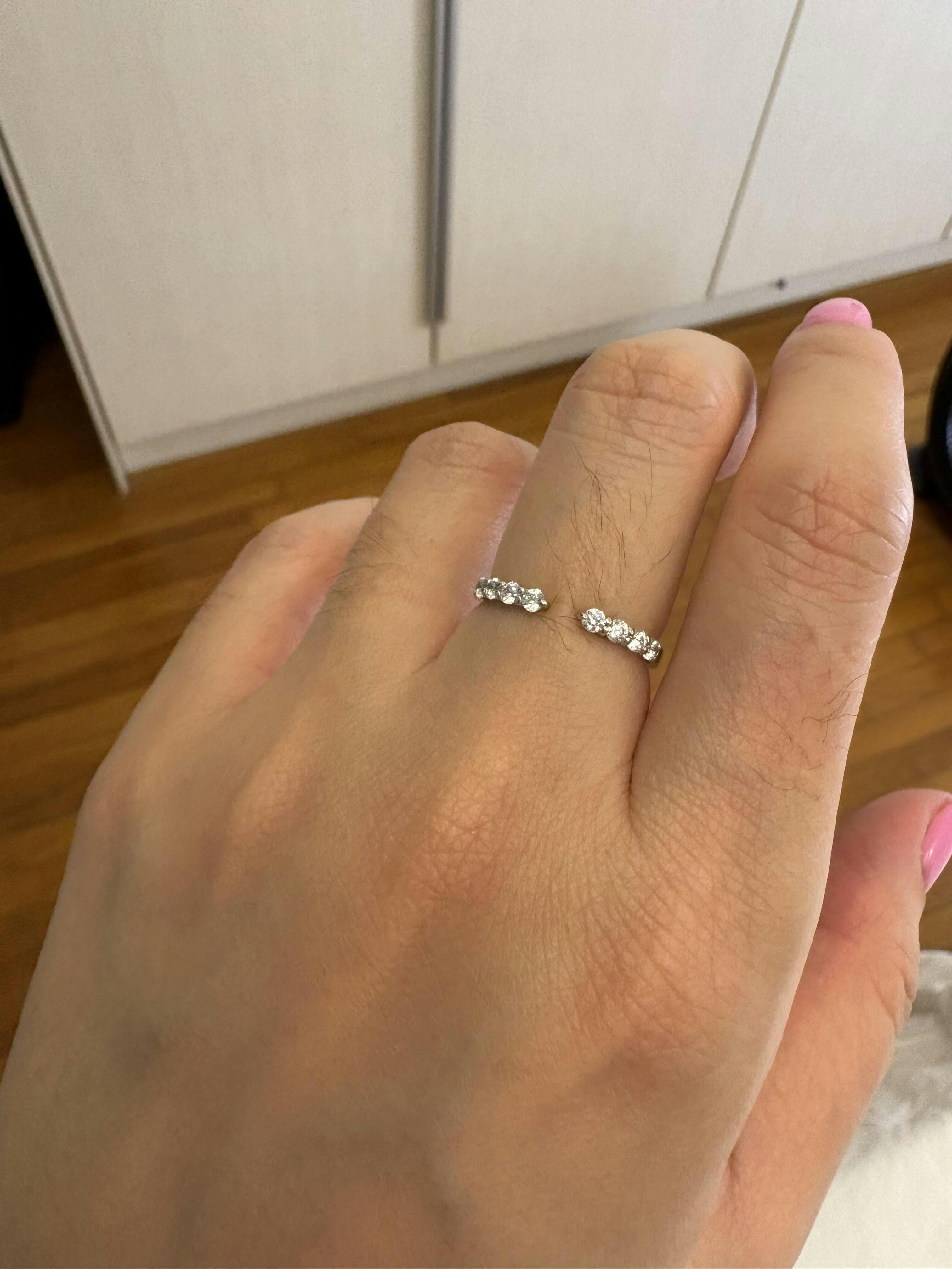 A modern meets vintage inspiration, the Ellery Open Ring features a delicate and intricate pattern of scalloped diamond simulants resting on either side of an open space. The open design leaves room for an engagement ring to sit perfectly flush against the band, creating a soft and romantic silhouette that beautifully enhances the center diamond. It is perfect for a modern-day woman who appreciates exquisite artistry.