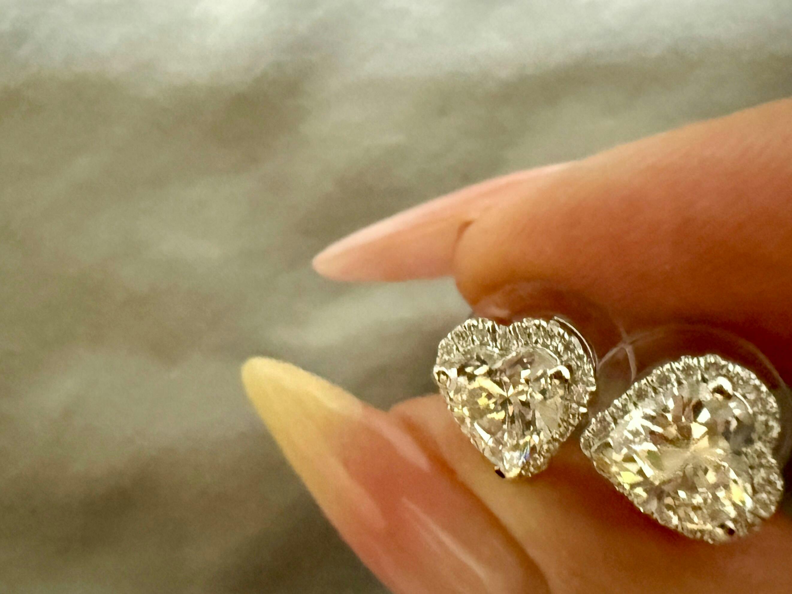 Introduce a hint of sophisticated femininity to your wardrobe with these elegant set of ear studs. The Mia Heart Halo Ear Studs features a 1CT equivalent heart-shaped stone encircled by a gleaming halo of pavé stones. A delicate statement of love, this classic piece will capture your heart.