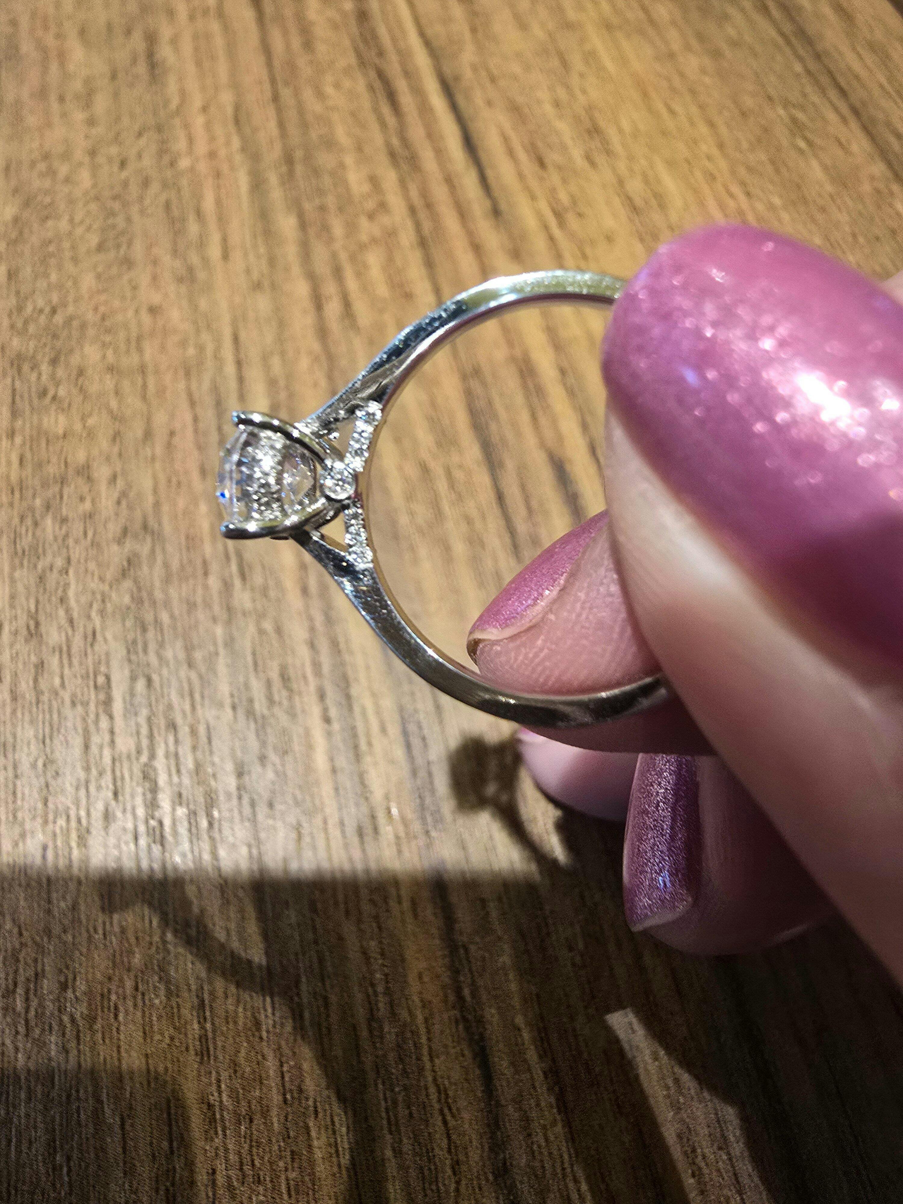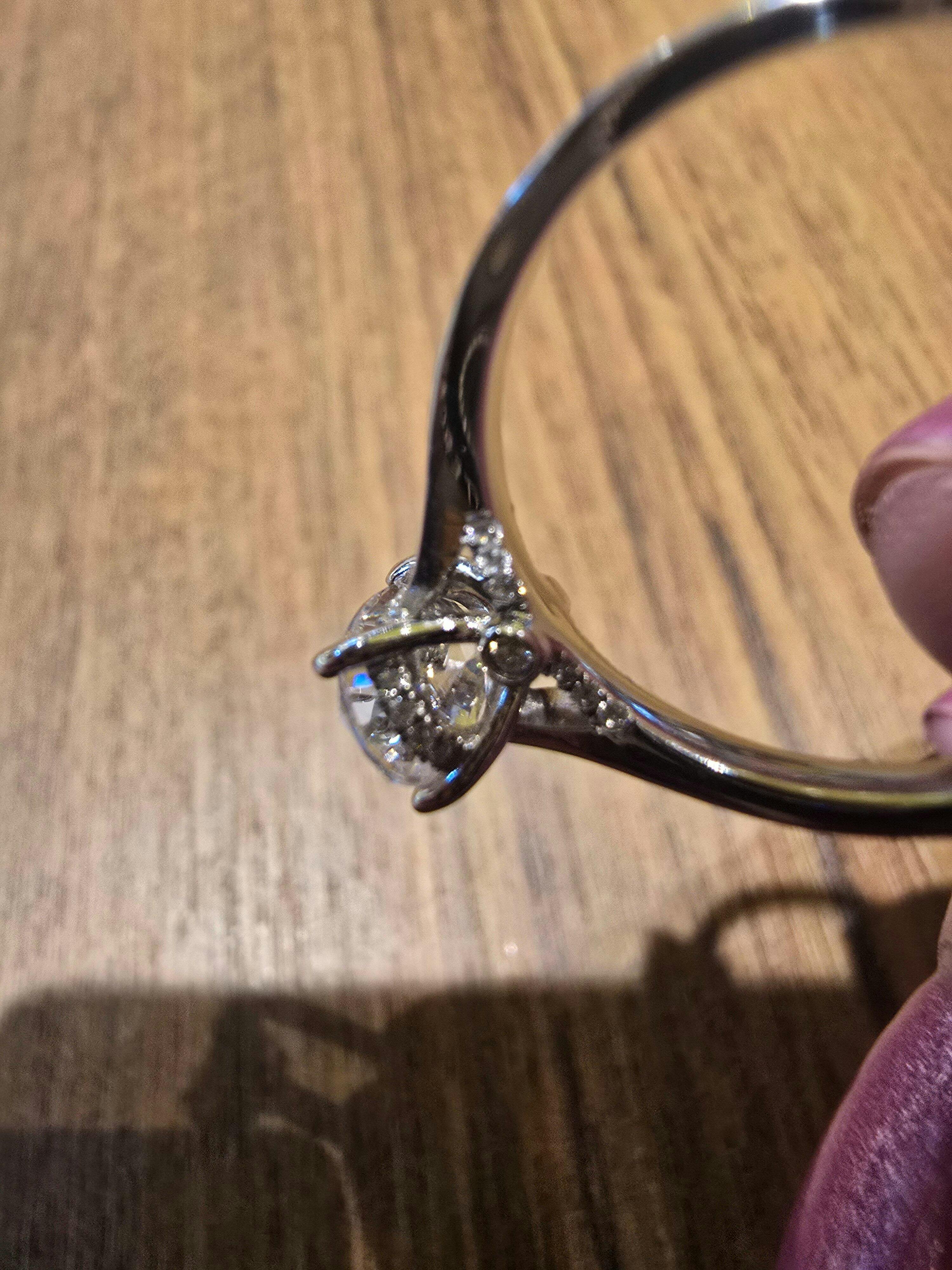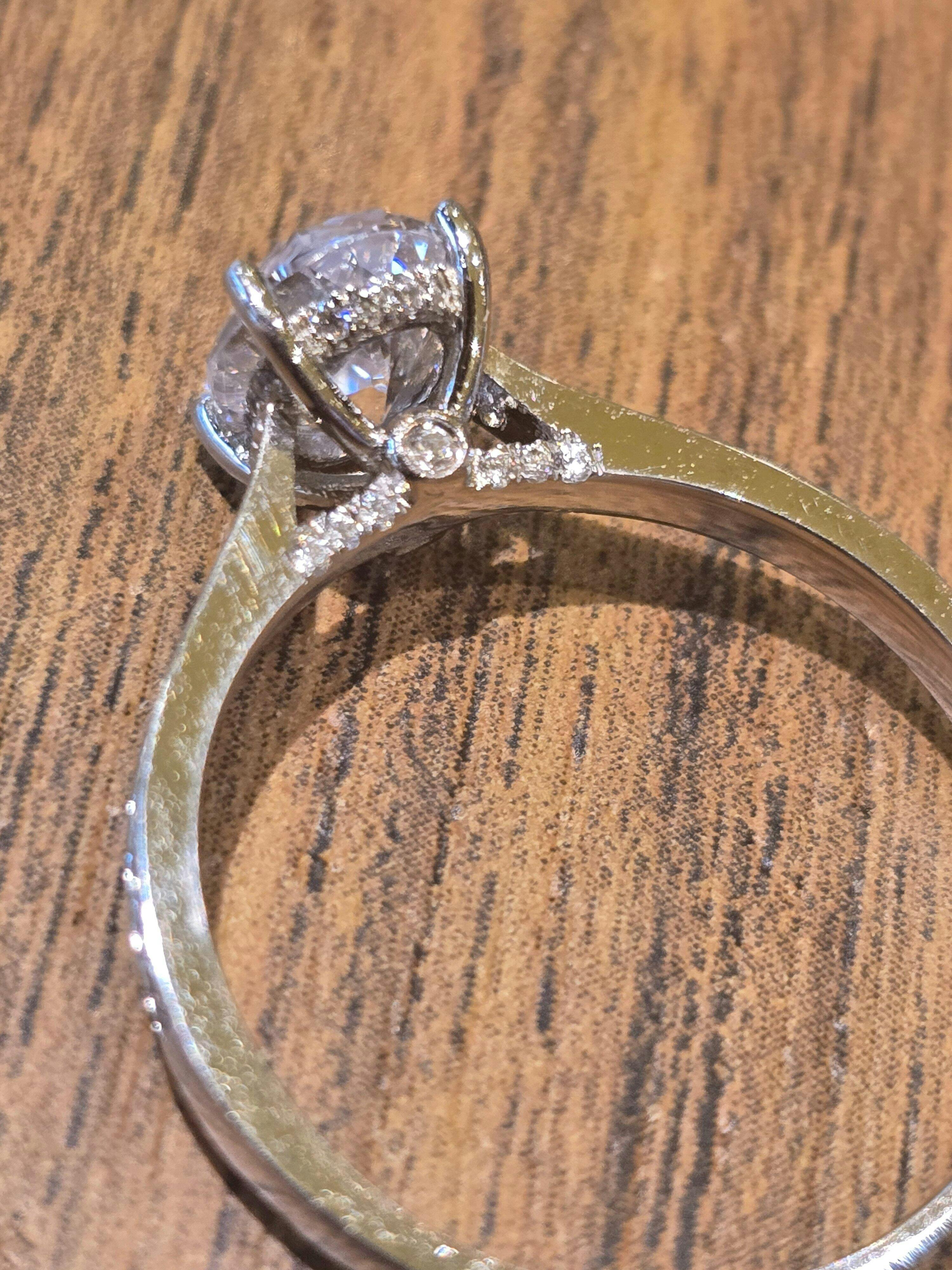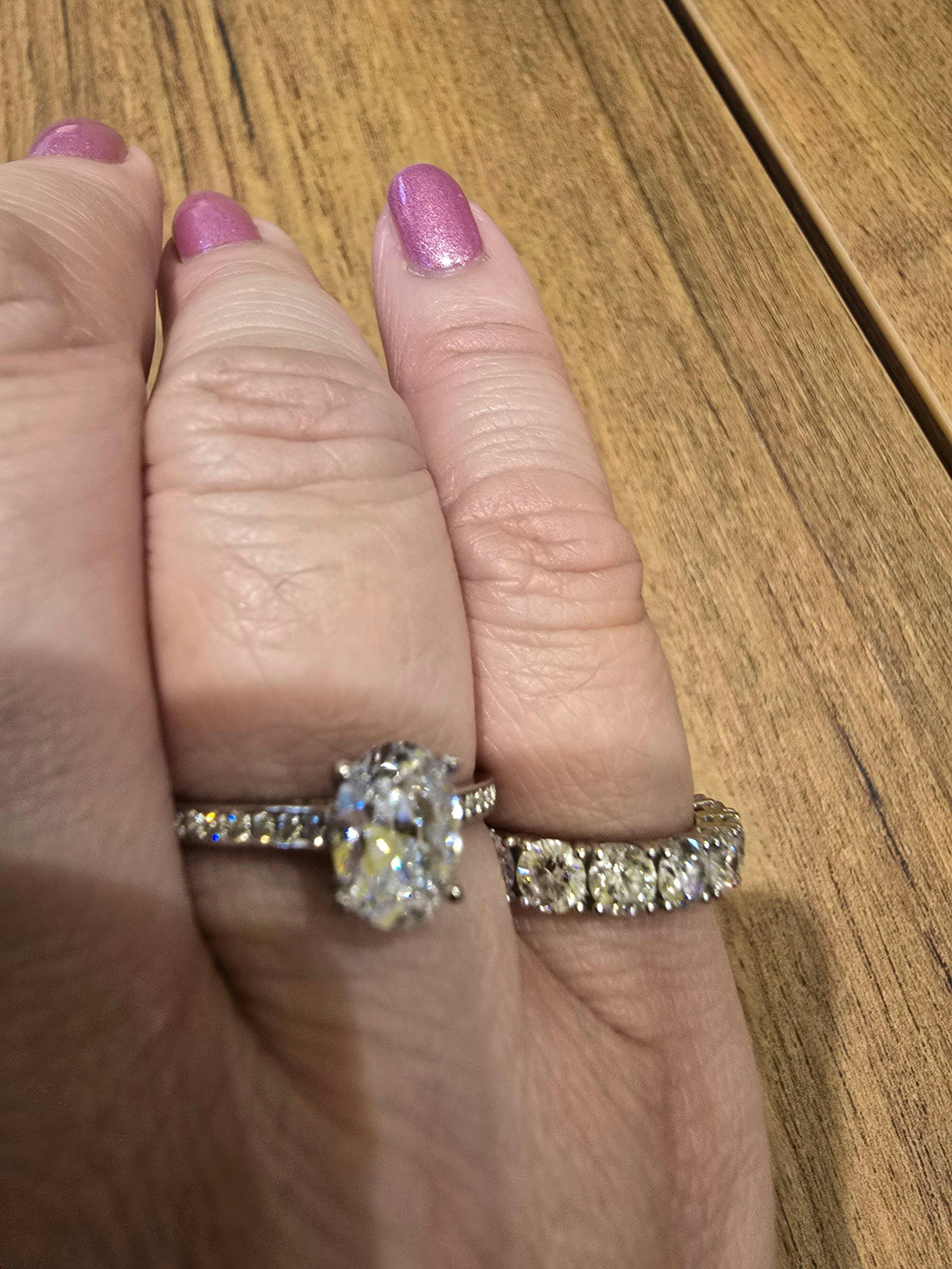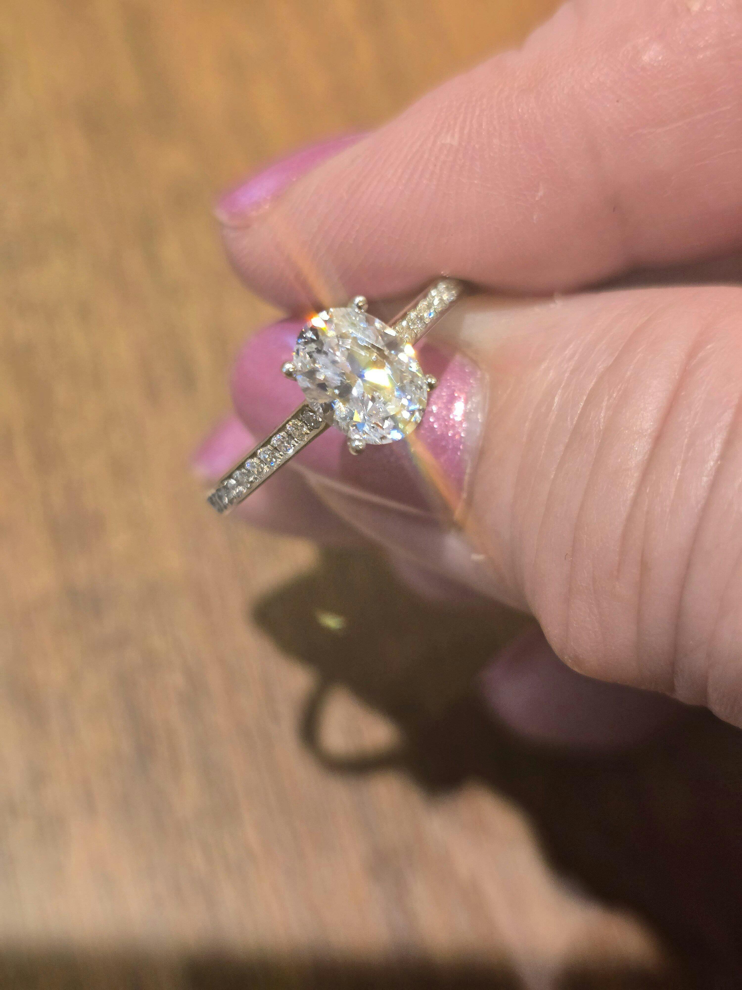 Specifications: The size of a 2CT and 3CT equivalent oval centre stone measures at 6 x 8mm and 7 x 10mm respectively. Width of band is 1.9mm.