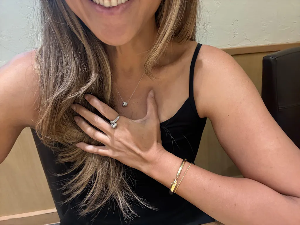 As with all fine jewellery, your Éclat by Oui piece deserves proper care. To preserve its lustre, avoid contact with harsh chemicals such as lotion, chlorine, and perfume.